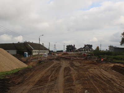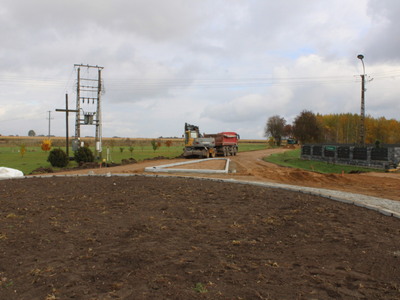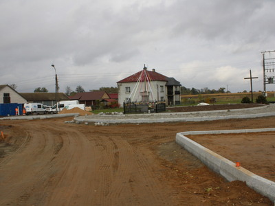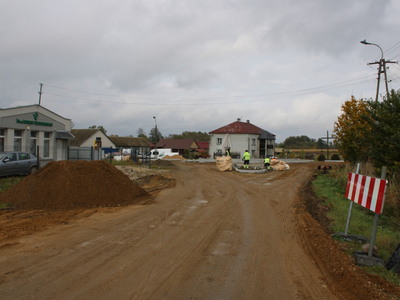 Widać pierwsze efekty. Wykonano zarys skrzyżowania typu rondo oraz częściowo podbudowę pod drogę.