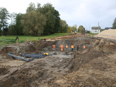 Obecnie trwają roboty związane z budową obiektu inżynierskiego.