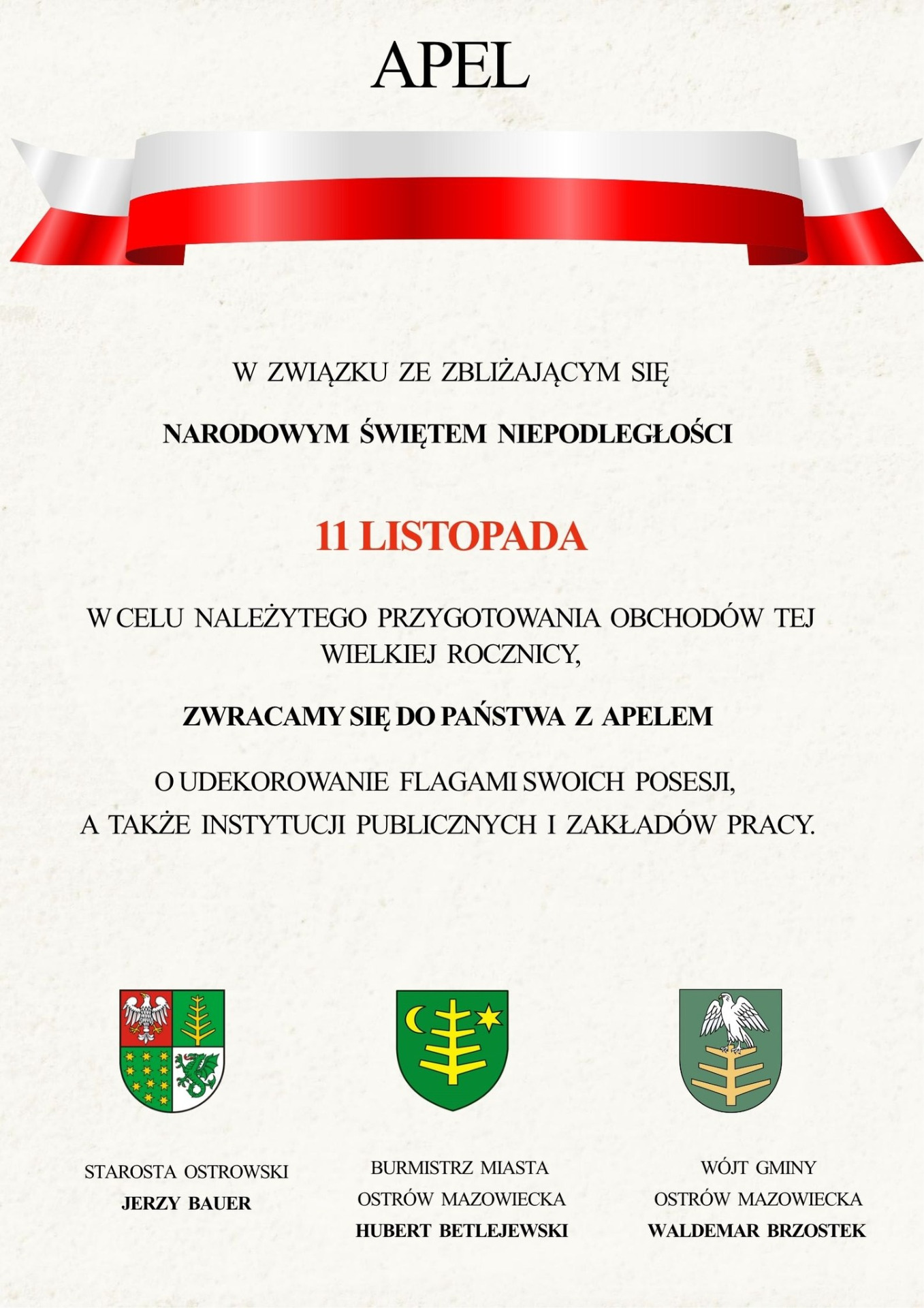 Zapraszamy mieszkańców na uroczyste obchody Narodowego Święta Niepodległości - 11 Listopada.