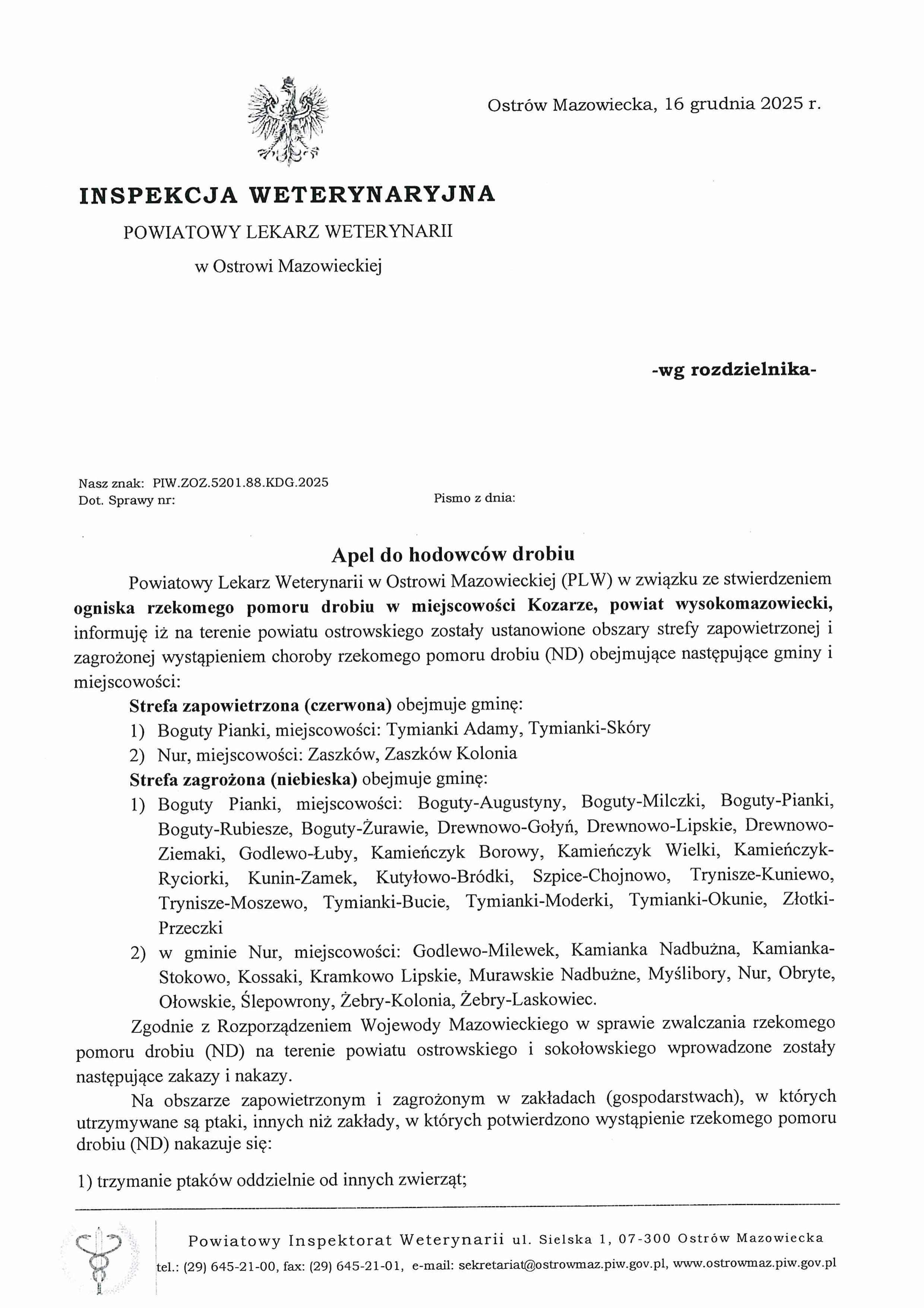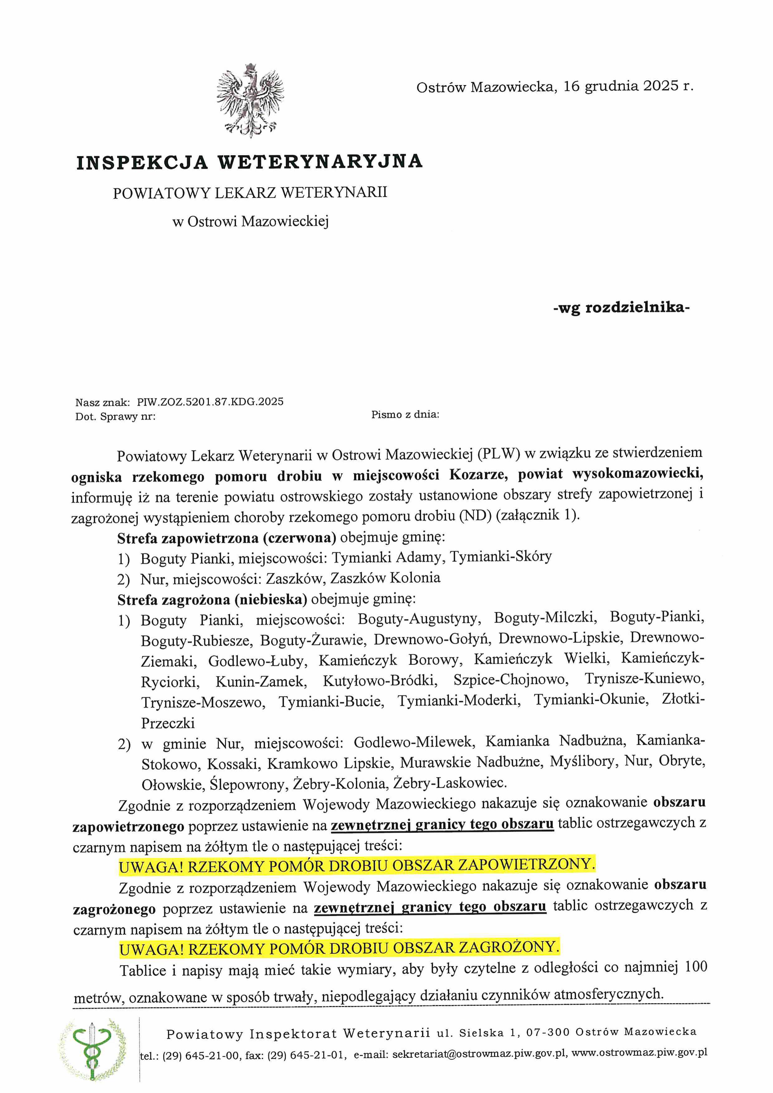 UWAGA !! WAŻNA INFORMACJA DLA HODOWCÓW DROBIU !!