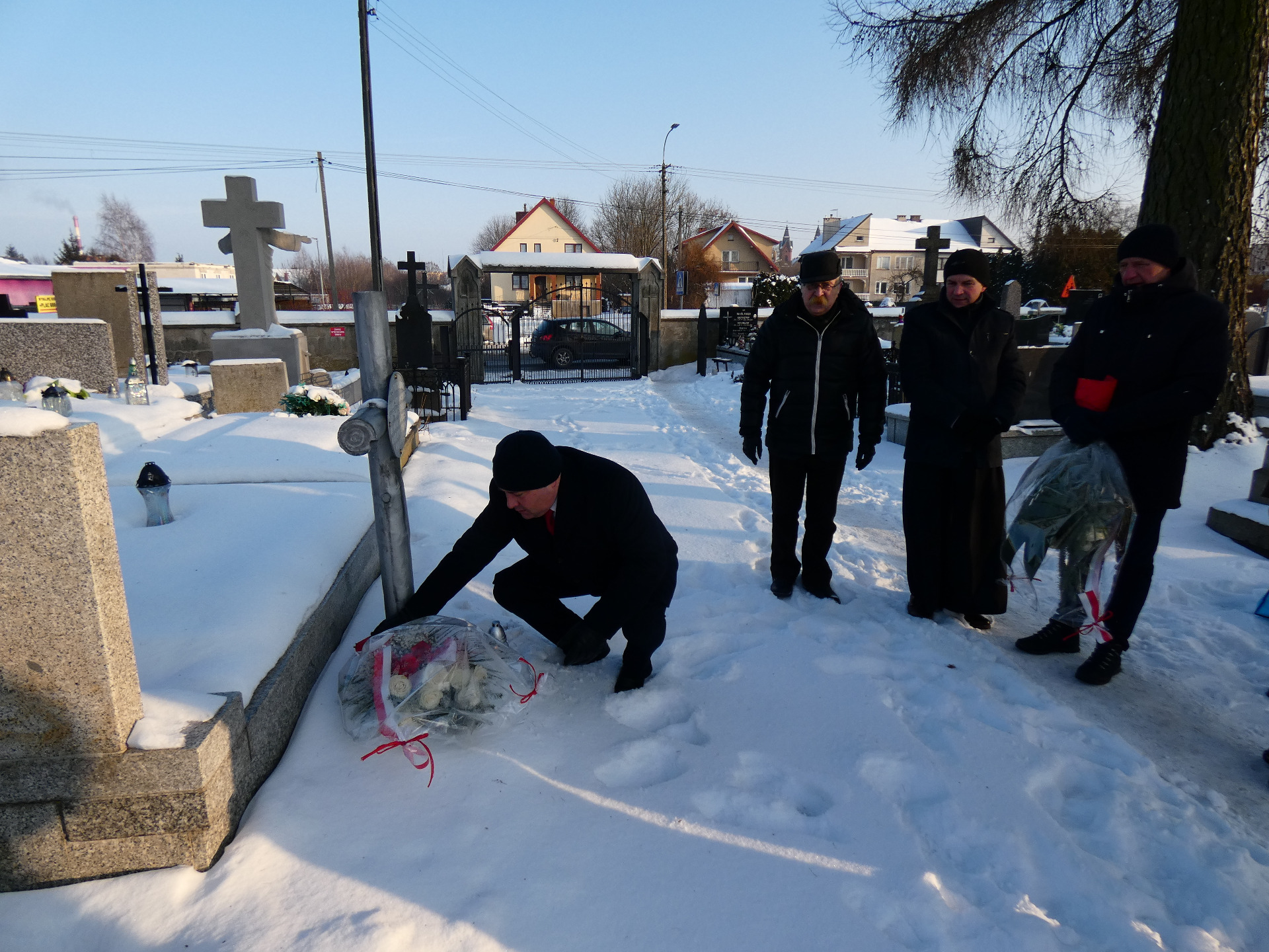 22 stycznia uczciliśmy pamięć uczestników Powstania Styczniowego z lat 1863–1864. Delegacje Powiatu Ostrowskiego, Miasta Ostrów Mazowiecka i Gminy Ostrów Mazowiecka wspólnie oddały hołd bohaterom, odwiedzając miejsca związane z tym heroicznym i dramatycznym zrywem niepodległościowym. Na ostrowskim cmentarzu parafialnym na powstańczych mogiłach złożono kwiaty i zapalono znicze. W wydarzeniu uczestniczył proboszcz parafii pw. Wniebowzięcia Najświętszej Maryi Panny w Ostrowi Mazowieckiej ks. Robert Sulich, a po grobach powstańców oprowadził nas Pan Andrzej Mierzwiński – pasjonat i znawca lokalnej historii. W ten symboliczny sposób uczciliśmy pamięć poległych i zmarłych powstańców: Edwarda Bekiera, Jana Boguckiego, Józefa Brzostka, Leopolda Duszyńskiego, Władysława Kraczkiewicza, Bartłomieja Napiórkowskiego, Franciszka Ołdakowskiego oraz Jana Sieńkiewicza, a także oddaliśmy hołd blisko czterdziestu innym uczestnikom powstania spoczywającym na ostrowskiej nekropolii.