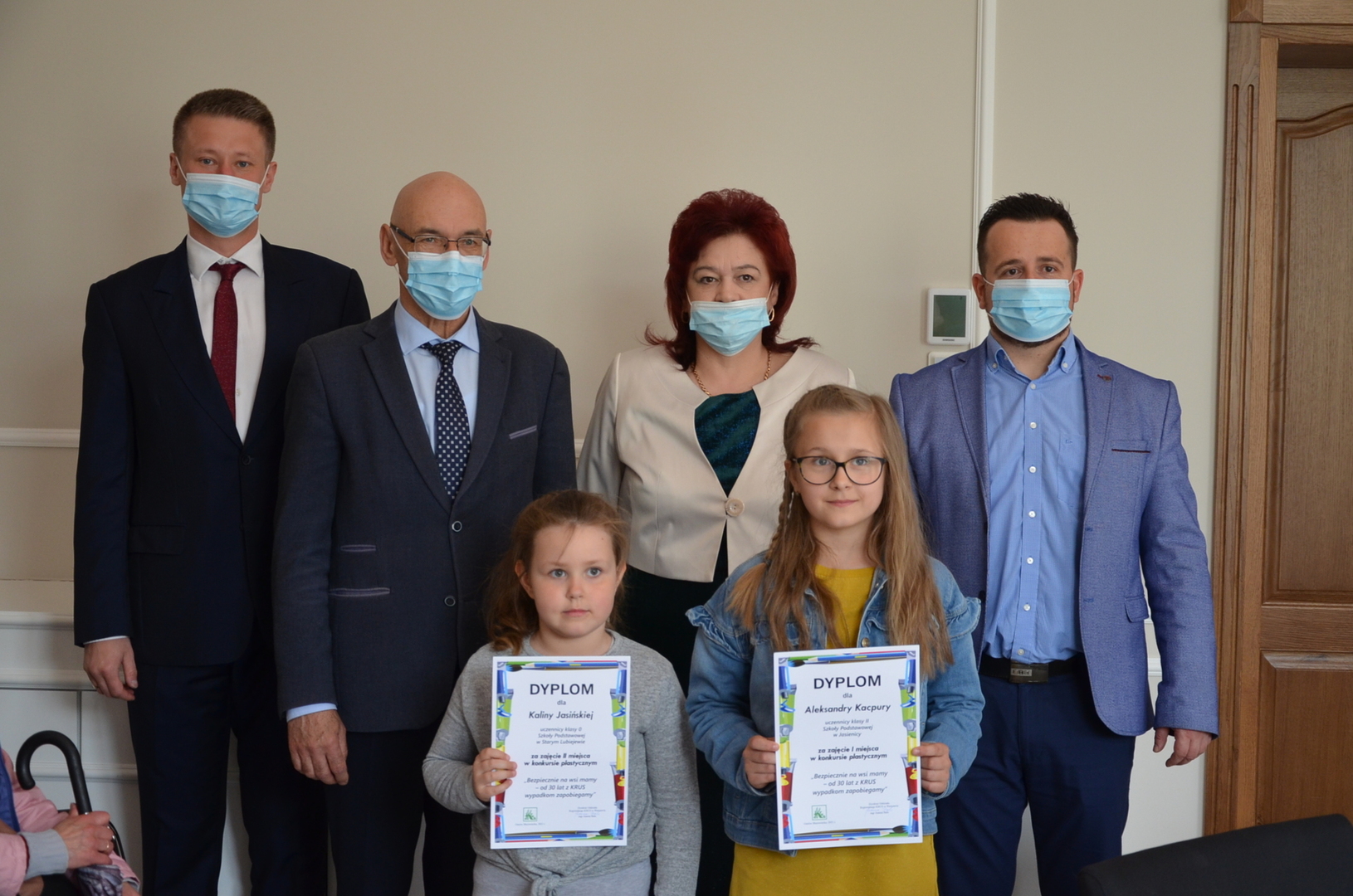 Dyplomy oraz upominki laureatom konkursu wręczyli Starosta Ostrowski – Pan Zbigniew Chrupek oraz Kierownik PT KRUS w Ostrowi Mazowieckiej – Pani Jolanta Urszula Brzuska. Zwycięzcy konkursu otrzymali nagrody rzeczowe ufundowane przez KRUS oraz Powiat Ostrowski.
