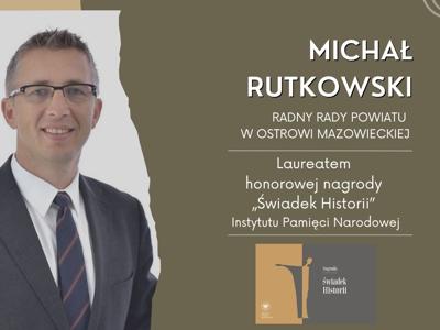- Michał Rutkowski Radny Rady Powiatu w Ostrowi Mazowieckiej otrzymał... czytaj więcejNa wniosek Starosty Ostrowskiego Jerzego Bauera, kapituła nagrody honorowej „Świadek Historii” Instytutu Pamięci Narodowej przyznała tą zaszczytną nagrodę Radnemu...czytaj więcej